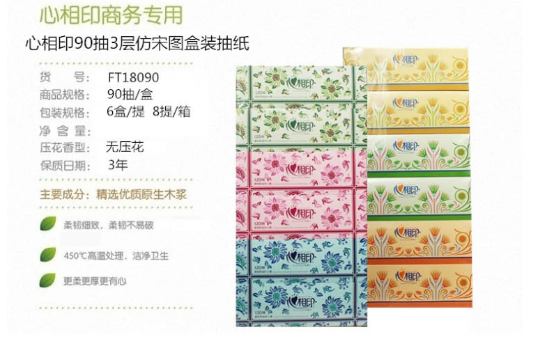 商品名稱:心相印抽紙F(tuán)T18090 硬盒抽紙辦公商用紙巾面巾紙單盒3層抽紙90抽(6盒裝)抽紙F(tuán)T18090