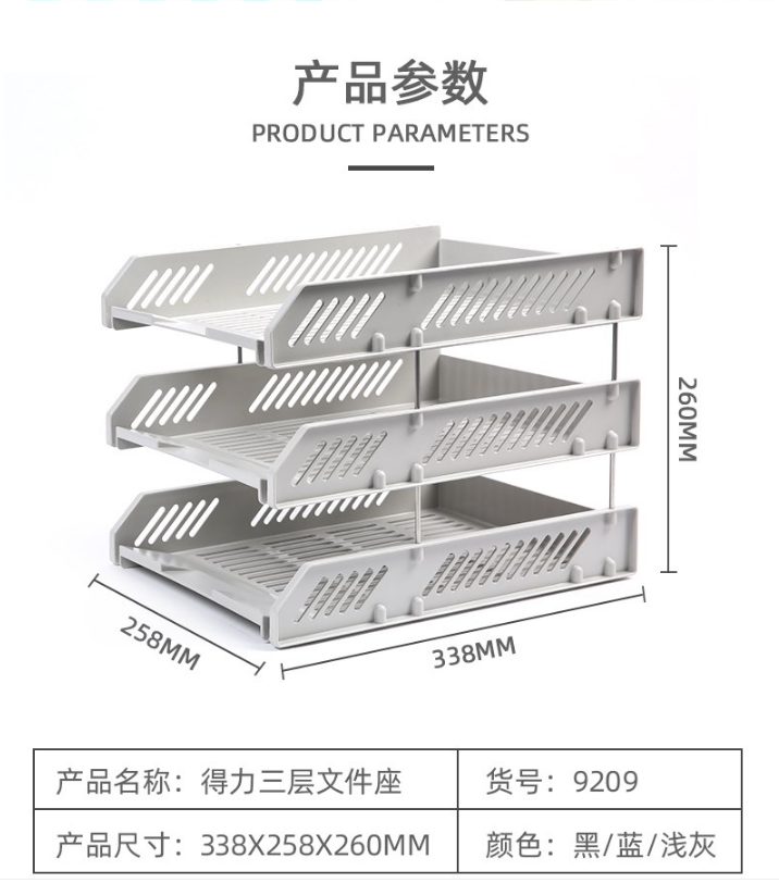 商品名稱:得力(deli)文件盤三層文件框資料框辦公桌面收納文件夾架 辦公用品 得力(deli)9209三層文件座