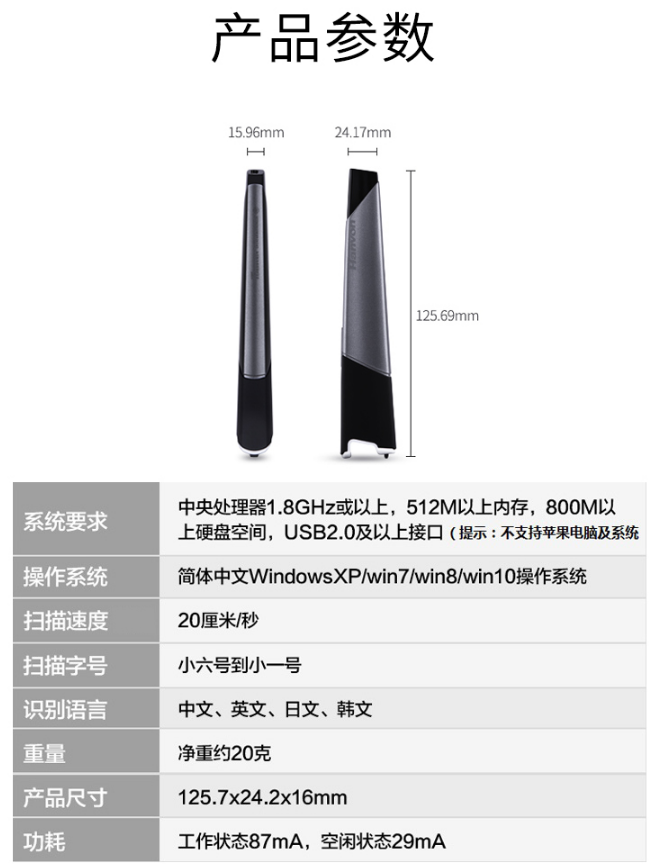 商品名稱:漢王(Hanvon)V587 掃描儀 掃描筆錄入筆錯(cuò)題掃描筆通用文字識(shí)別高速手持便攜式掃描儀