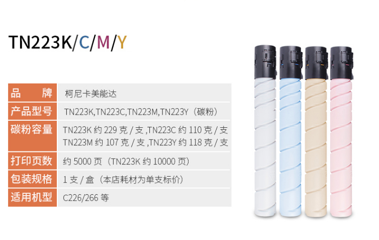 商品名稱:柯尼卡美能達(dá)(KONICA MINOLTA)C226 粉盒 復(fù)印機(jī)原裝黑藍(lán)紅黃彩色碳粉 粉盒墨粉 單支裝