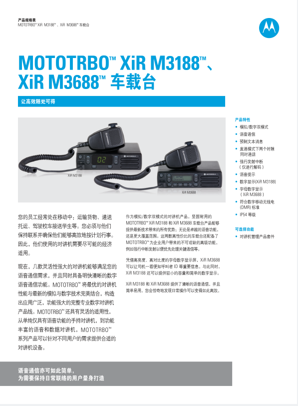 商品名稱:摩托羅拉(Motorola)XIR M3188 對(duì)講機(jī) 車載臺(tái) 數(shù)字車載電臺(tái)大功率 對(duì)講機(jī)數(shù)字顯屏 數(shù)模兩用車載臺(tái)