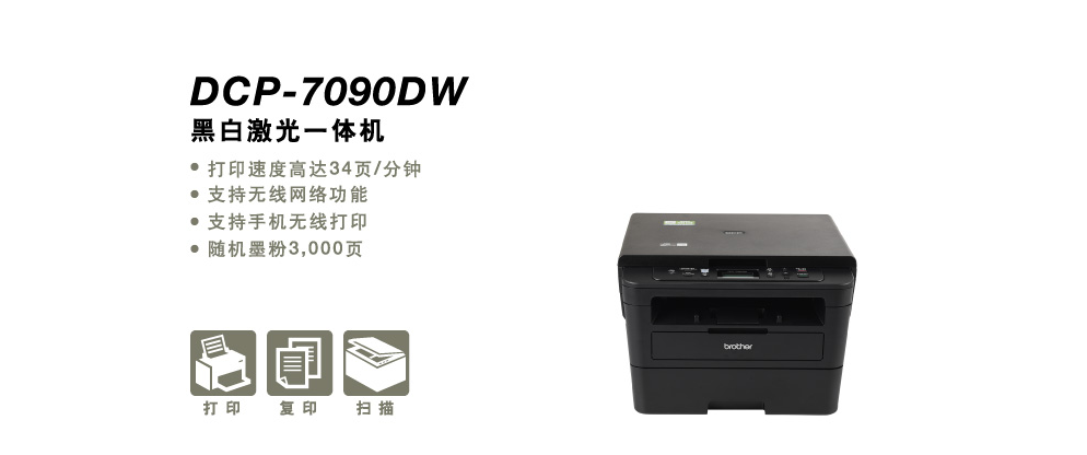 商品名稱:兄弟(brother)DCP-7090DW 黑白激光多功能一體機(jī)(打印、復(fù)印、掃描)