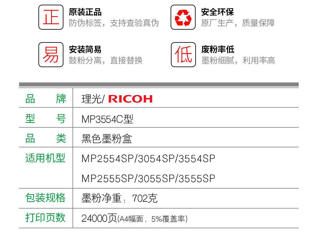 商品名稱:理光(Ricoh)MP3554C原裝粉盒