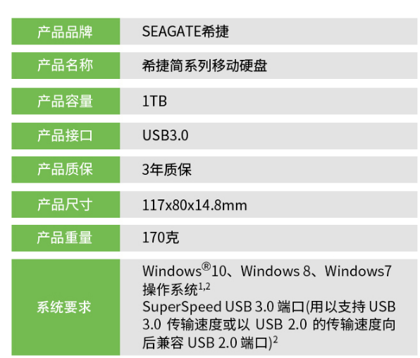 商品名稱(chēng):希捷(Seagate) 移動(dòng)硬盤(pán) 1TB USB3.0 2.5英寸 高速 輕薄 便攜 STJL10004001TB移動(dòng)硬盤(pán)