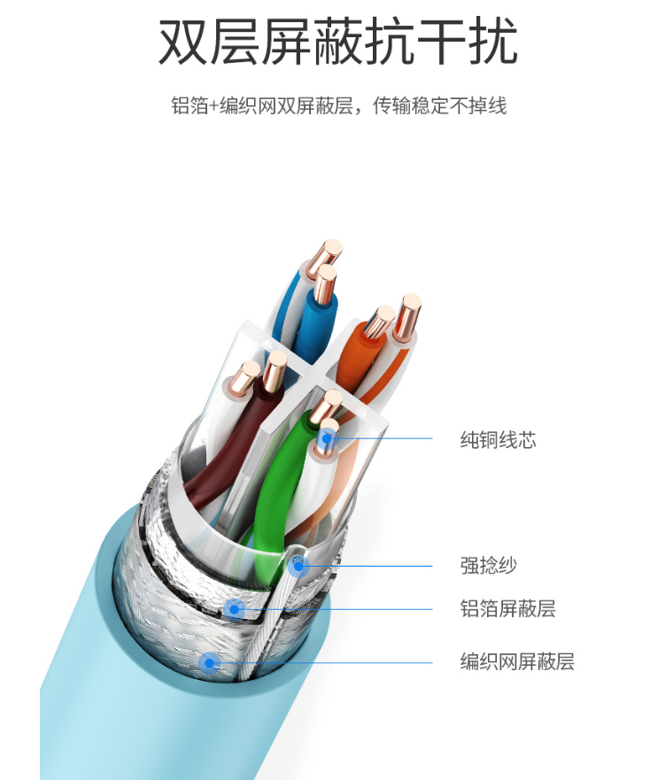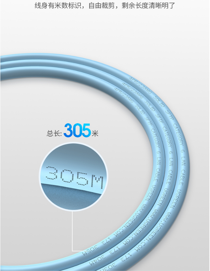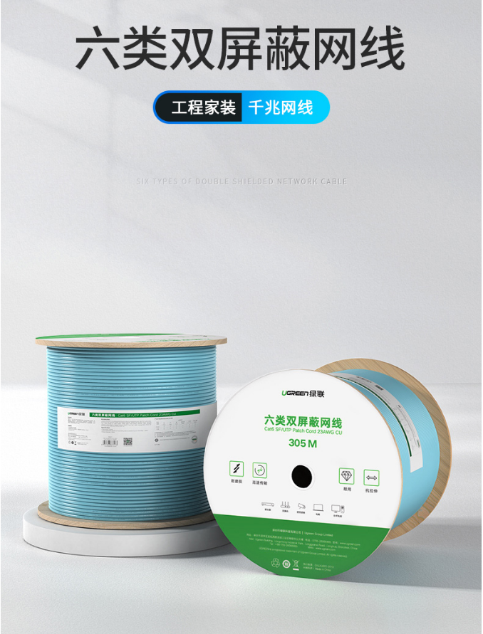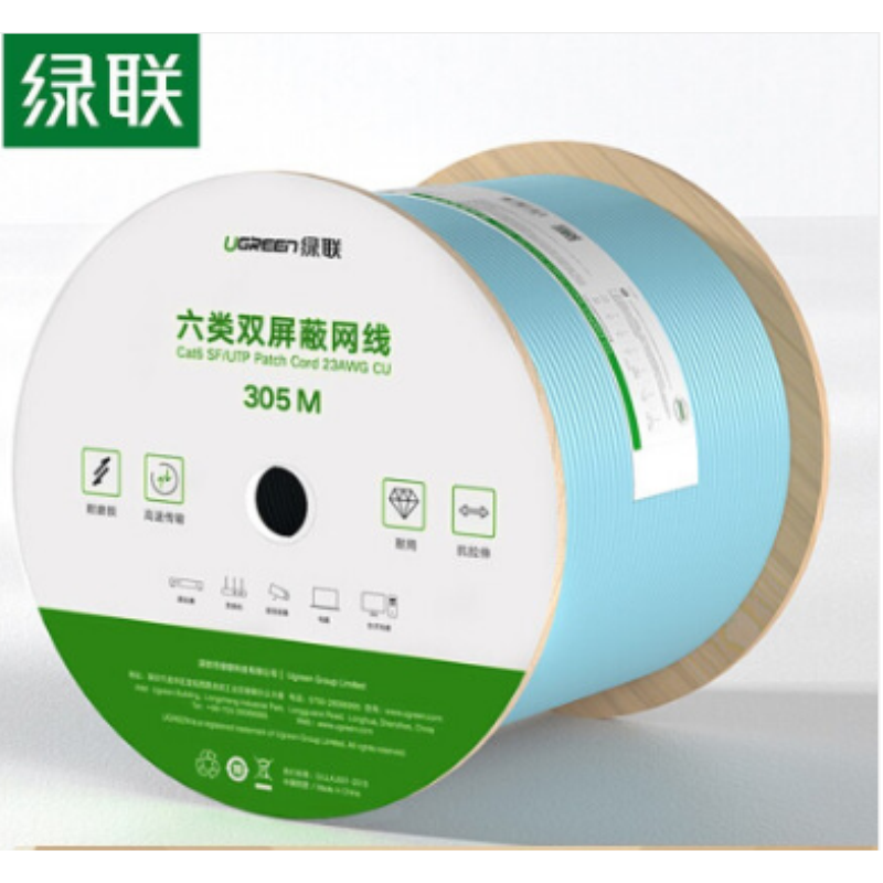 商品名稱:綠聯(lián)(UGREEN)六類雙屏蔽千兆網(wǎng)線 【工程版0.58mm純銅線芯】八芯 CAT6類8芯雙絞家裝辦公箱線305米70317