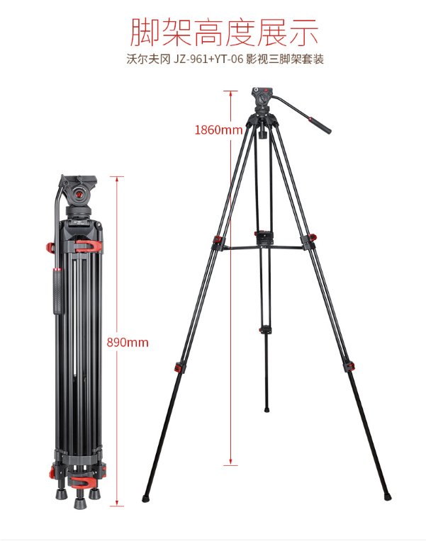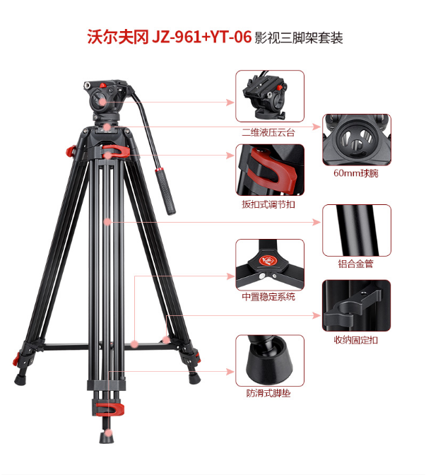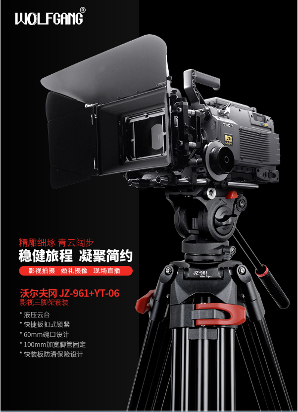 商品名稱:沃爾夫?qū)╓OLFGANG)JZ-961+YT-06 專業(yè)攝像機(jī)三腳架 二維液壓阻尼云臺(tái)支架 稱重6KG 沃爾夫?qū)鵍Z-961