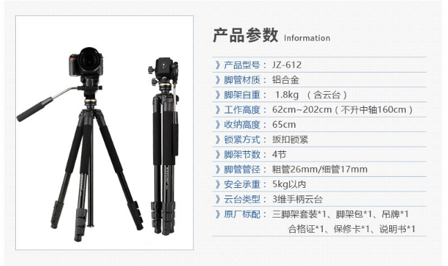 商品名稱:沃爾夫?qū)╓OLFGANG) 三腳架套裝 適用單反相機(jī)微單相機(jī)等沃爾夫?qū)鵍Z-612