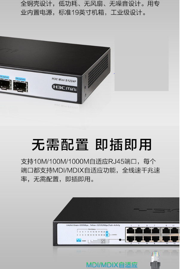 商品名稱:華三(H3C)Mini S1224F 24千兆電口+2千兆光口非網(wǎng)管機(jī)架式企業(yè)級(jí)網(wǎng)絡(luò)交換機(jī) 網(wǎng)線分線器 分流器華三千兆交換機(jī)MiniS1224F