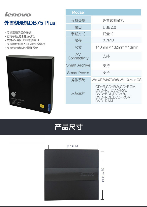 商品名稱(chēng):聯(lián)想(Lenovo)8倍速 外置光驅(qū) DVD刻錄機(jī) 移動(dòng)光驅(qū) 聯(lián)想外置光驅(qū)DB75 PLUS 黑色
