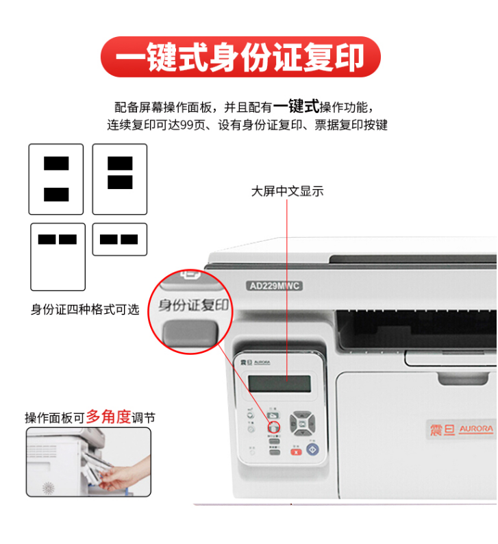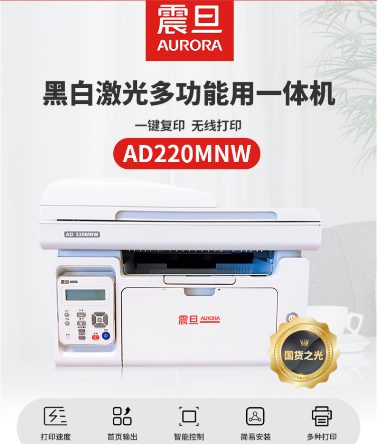 商品名稱(chēng):震旦(AURORA)AD220MNW 黑白激光多功能一體機(jī)(復(fù)印/打印/掃描) A4打印機(jī) 家用辦公打印機(jī)