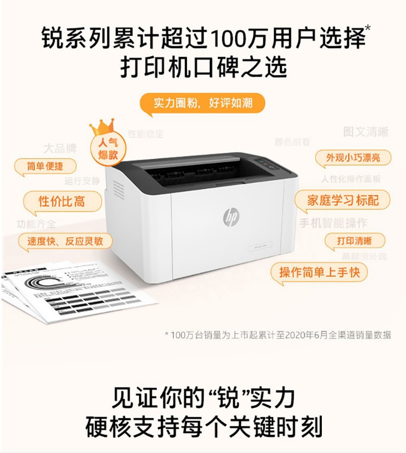 商品名稱:惠普(HP)108w A4黑白打印機(jī) 小型無線激光單打印