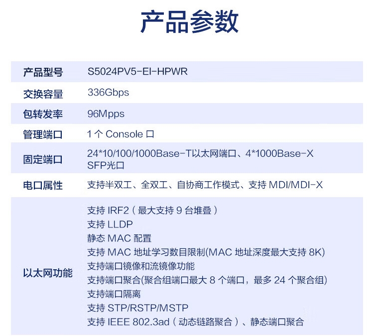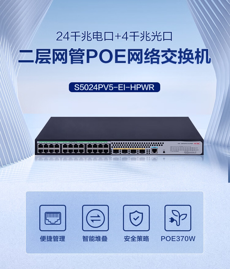 商品名稱(chēng):新華三(H3C)S5024PV5-EI-HPWR 以太網(wǎng)交換機(jī) 24口千兆電+4千兆光纖口二層WEB網(wǎng)管企業(yè)級(jí)網(wǎng)絡(luò)交換機(jī)POE供電370W
